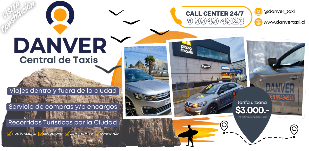 Desde Constitución, Danver Taxi trabaja día y noche para ti. Con nuestro Call Center 24/7, aseguramos atención inmediata, confianza y un transporte seguro dentro y fuera de la ciudad.